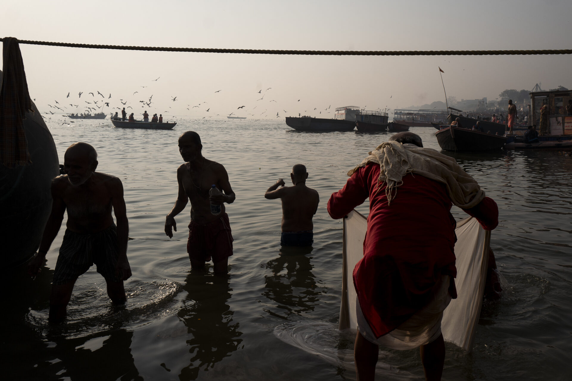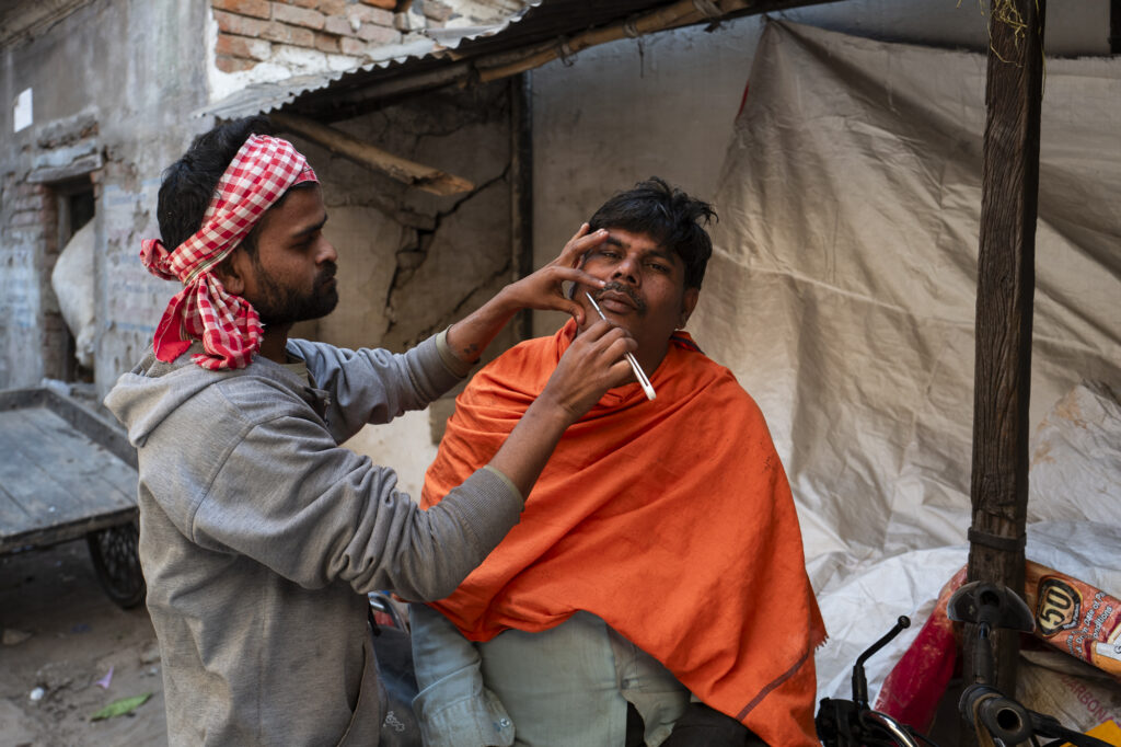Partenza all’alba con una barca per contestualizzare i ghat visti dall’acqua e successiva sessione sulla spiaggia della sponda est del Gange. Ci sposteremo poi per una sessione nel quartiere popolare di Kotwali, con rientro in Guest House nel tardo pomeriggio per la selezione delle immagini.